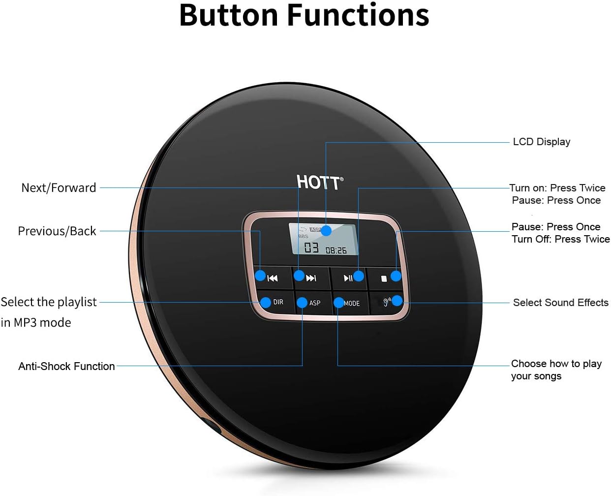 Thank you for choosing the HOTT CD511 Portable CD Player. This manual provides detailed instructions for the proper setup, operation, and maintenance of your device. Please read this manual thoroughly before use to ensure optimal performance and longevity of your CD player.
