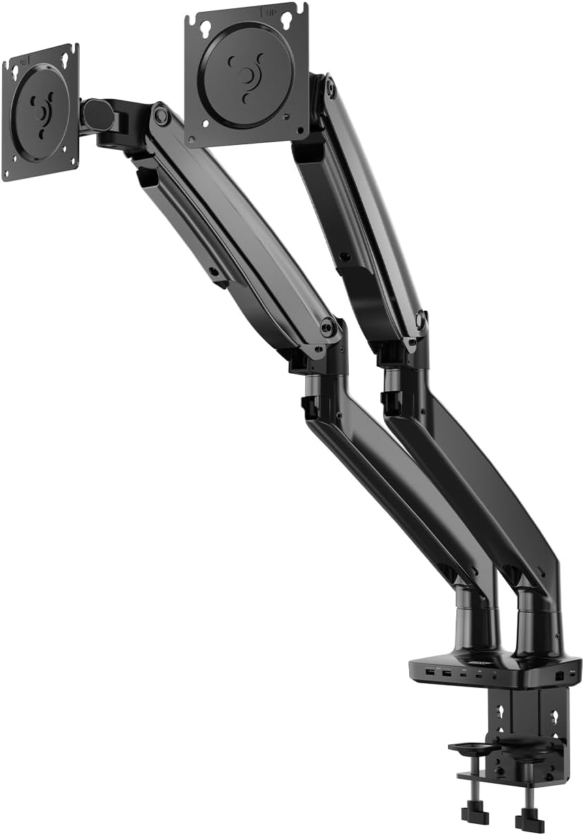 - Adjust Monitor Position: Once monitors are attached, adjust the height, tilt, swivel, and rotation to your desired viewing positions. The gas spring arms allow for smooth adjustments.