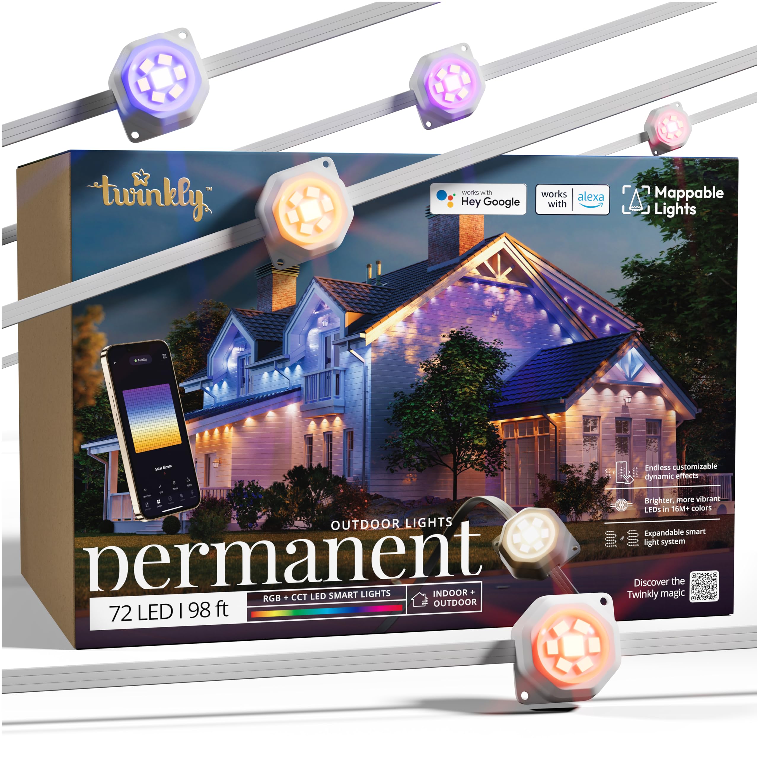 The Twinkly lights offer extraordinary vibrancy with over 16 million colors, including all tones of white (CCT). This allows for a wide range of lighting scenarios, from festive holiday displays to subtle architectural accent lighting.